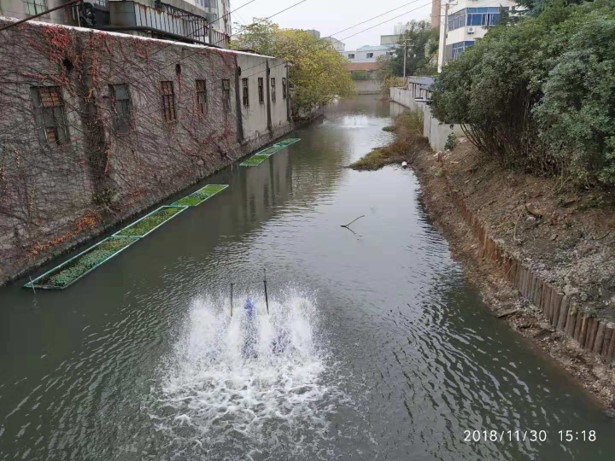 工程内容:通过构建高效微生物修复系统对河道水质进行改善提标,目前,已完成部分工程,水体黑臭现象已消除,整治效果得到业主方充分肯定,现进入水质提标阶段。